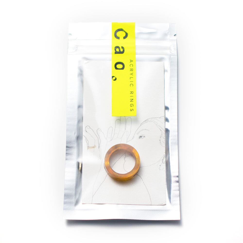 オレンジ、グリーン、ブラック、ゴールドラメなど様々なカラーリングが混在した希少なアクリルのリングです。