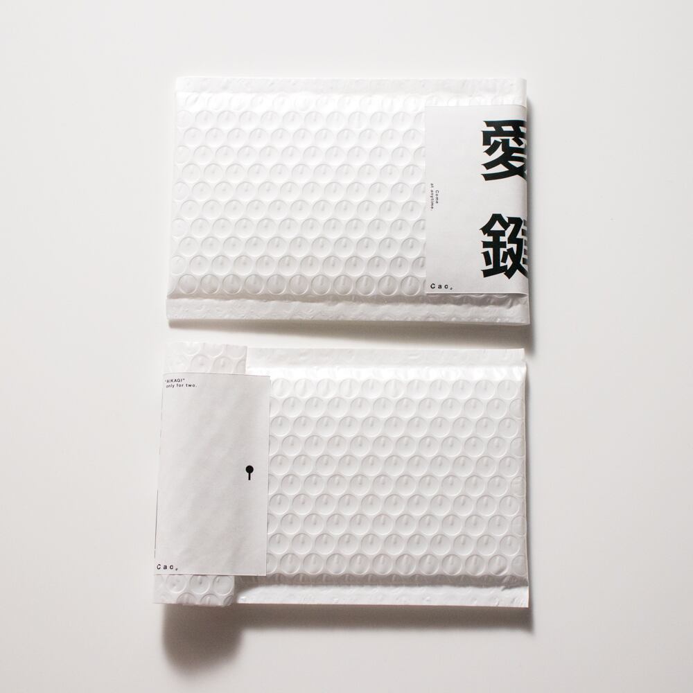 パッケージ は、合鍵を付けて相手にプレゼントするというサプライズ的な意味合いが含まれたギフトの為、中身が見えない不透明な梱包材のプチプチを使用。