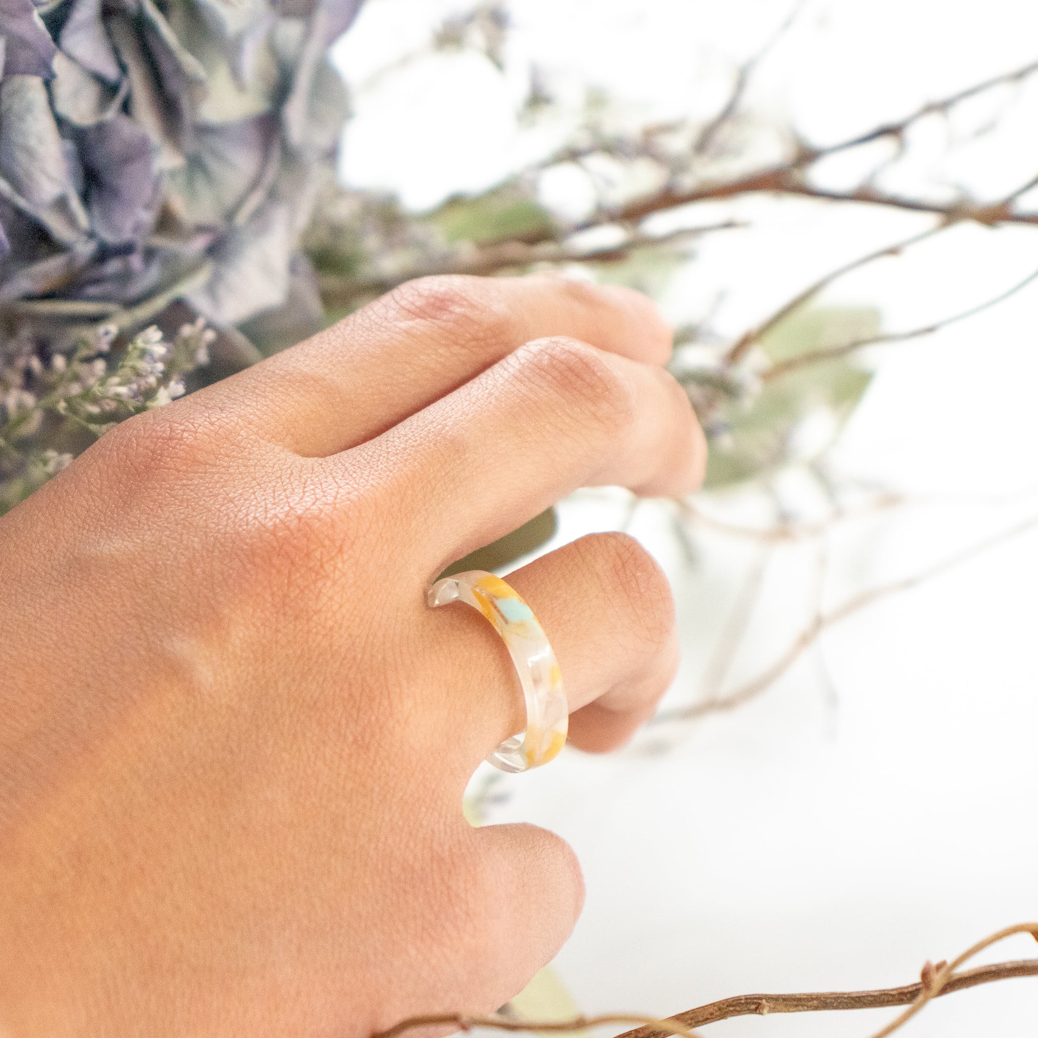 キャッチーでハッピーなアクリルに、思わず笑顔になれるリングです。