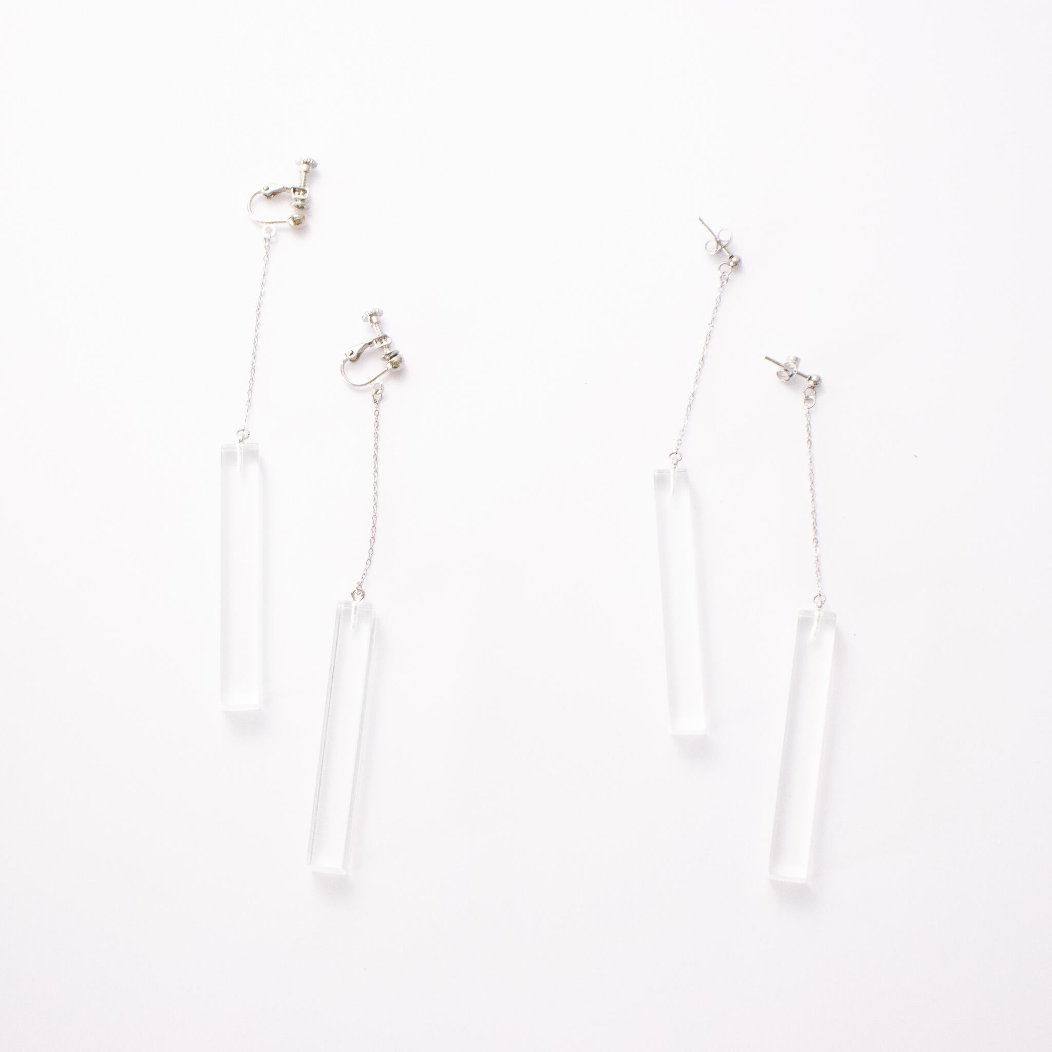 長めのチェーンと立体感のあるバーアクリルを組み合わせた、