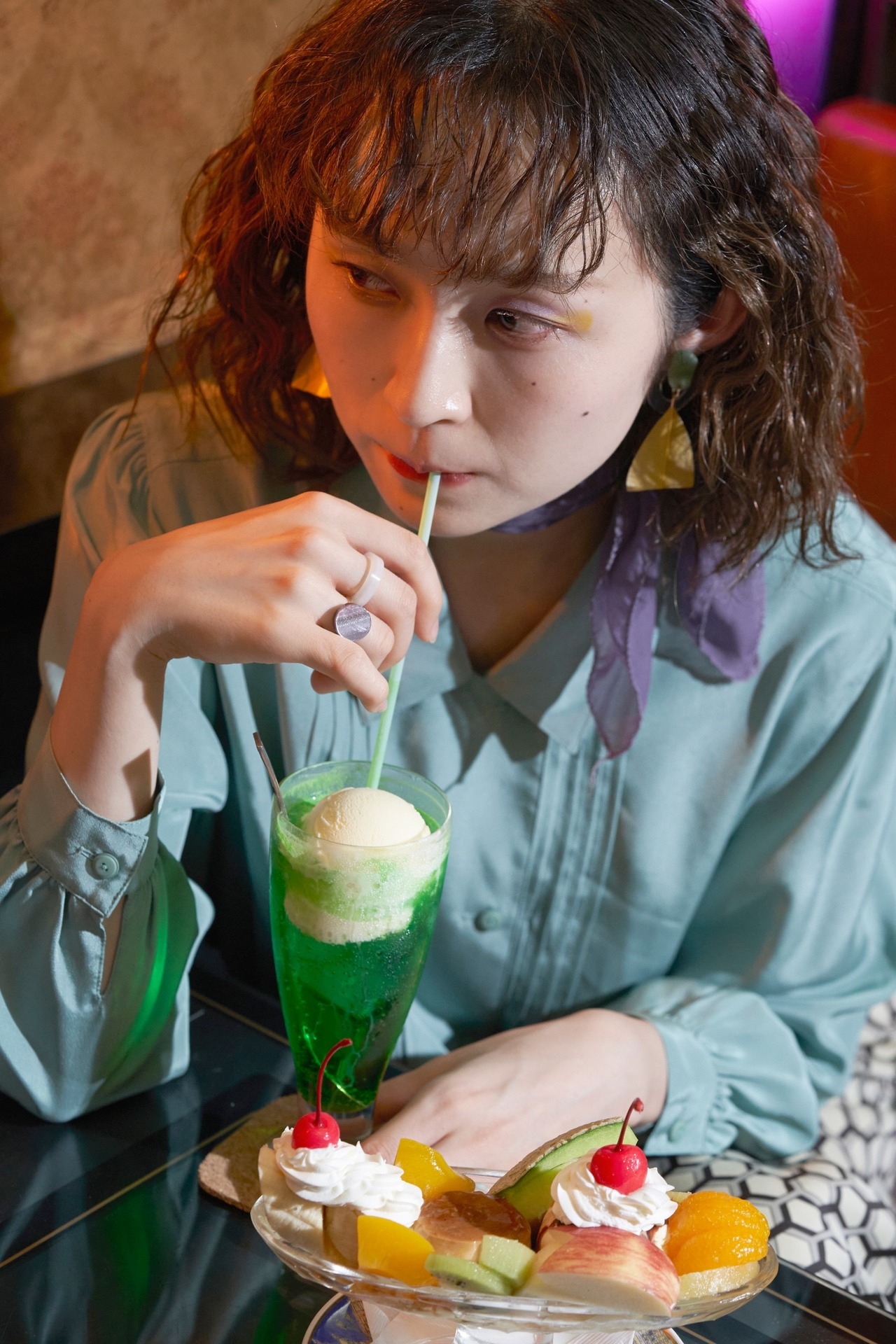 個性的で綺麗めなデザイン。印象に残る差し色のフェザーがポイントです。