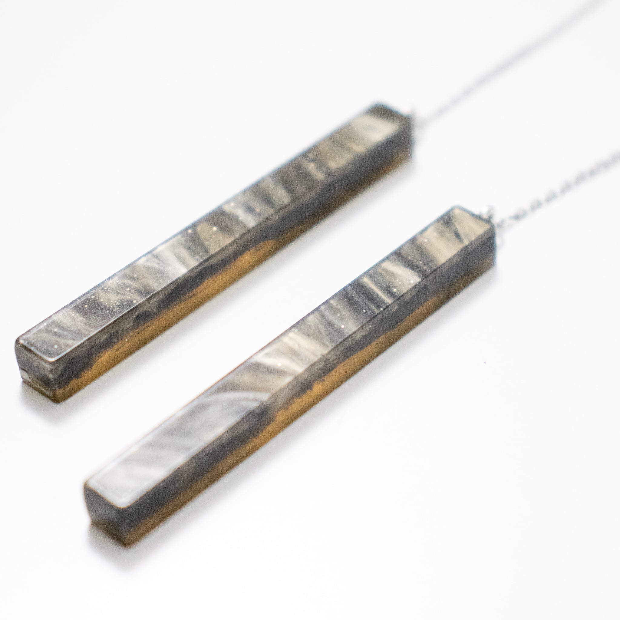 長めのチェーンと立体感のあるバーアクリルを組み合わせた、