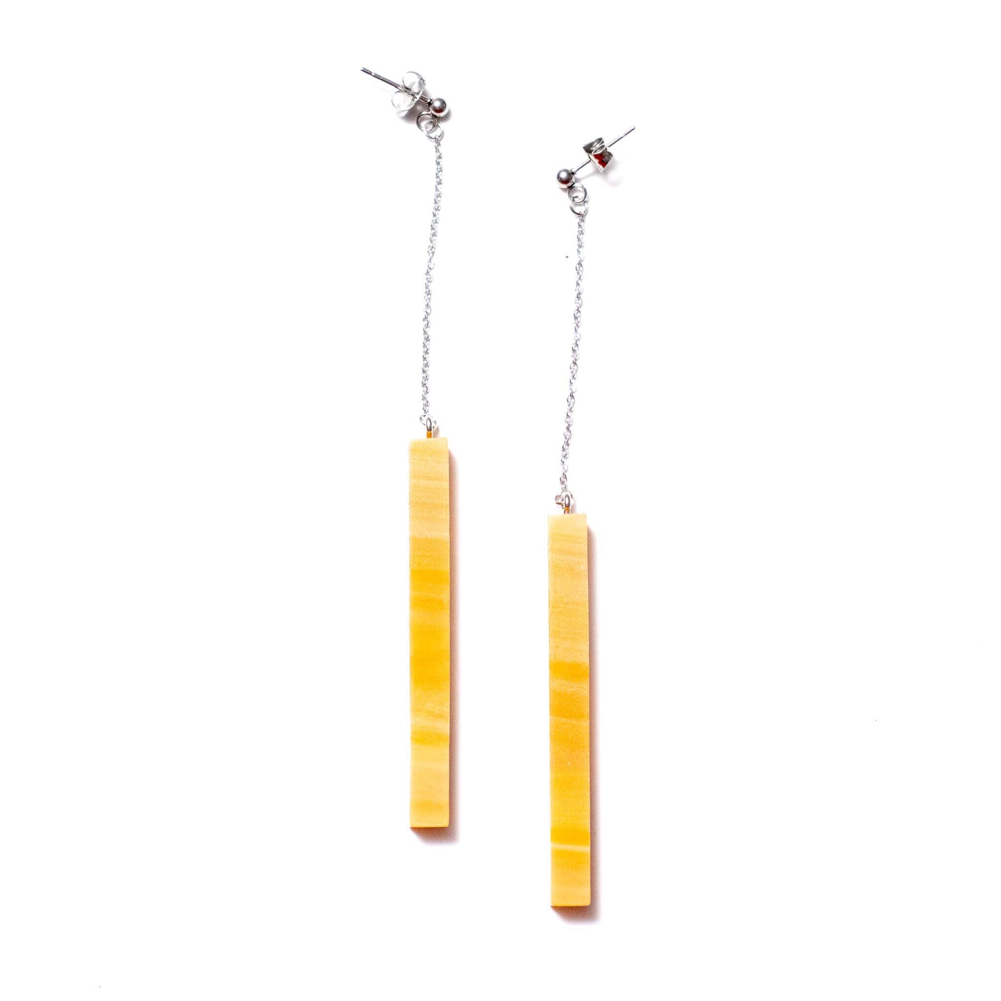 長めのチェーンと立体感のあるバーアクリルを組み合わせた、