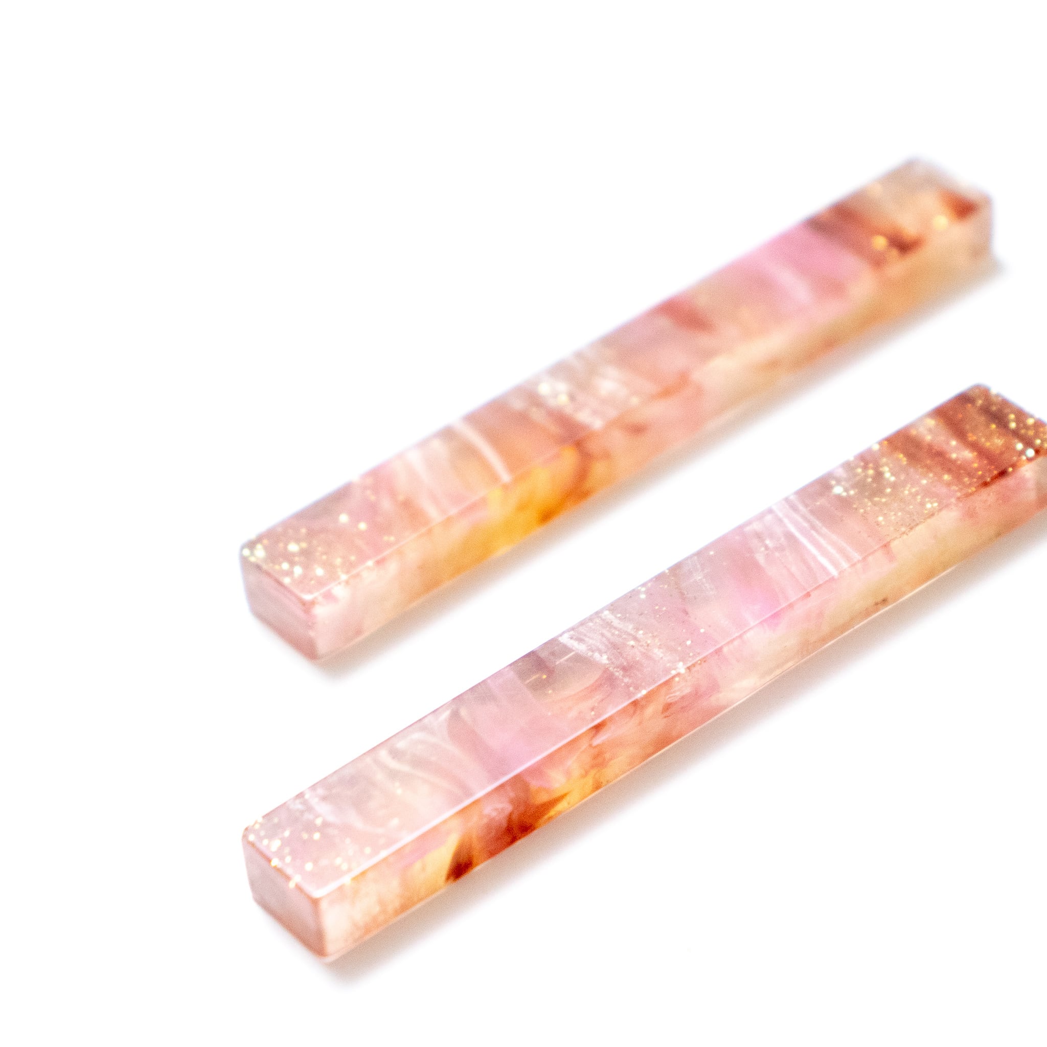 クリアベースに、ピンク、ブラウン、ラメゴールドなどが入り混じったアクリル板。