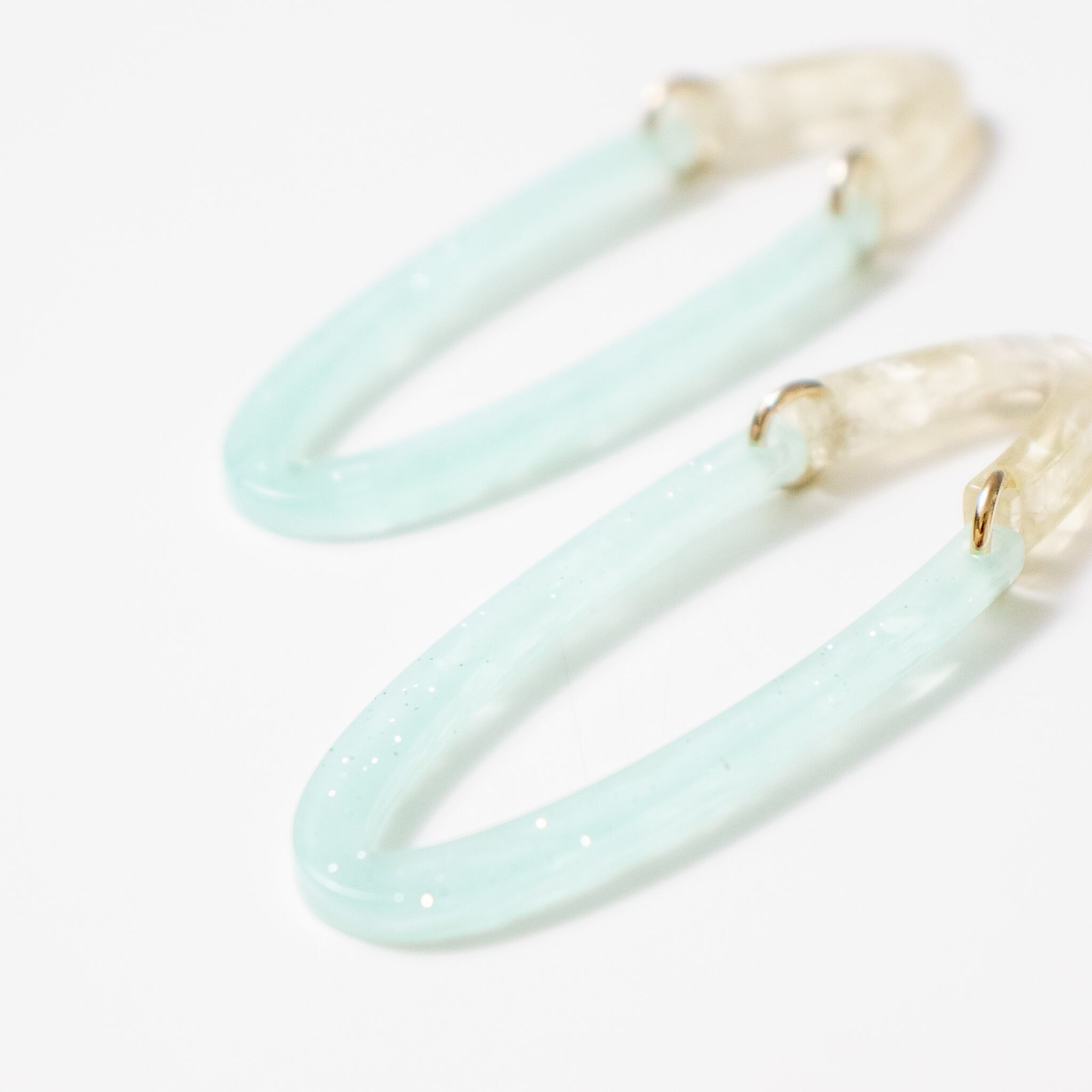 縦長のフープが個性的且つスッキリと見せてくれるアクリルピアスです。