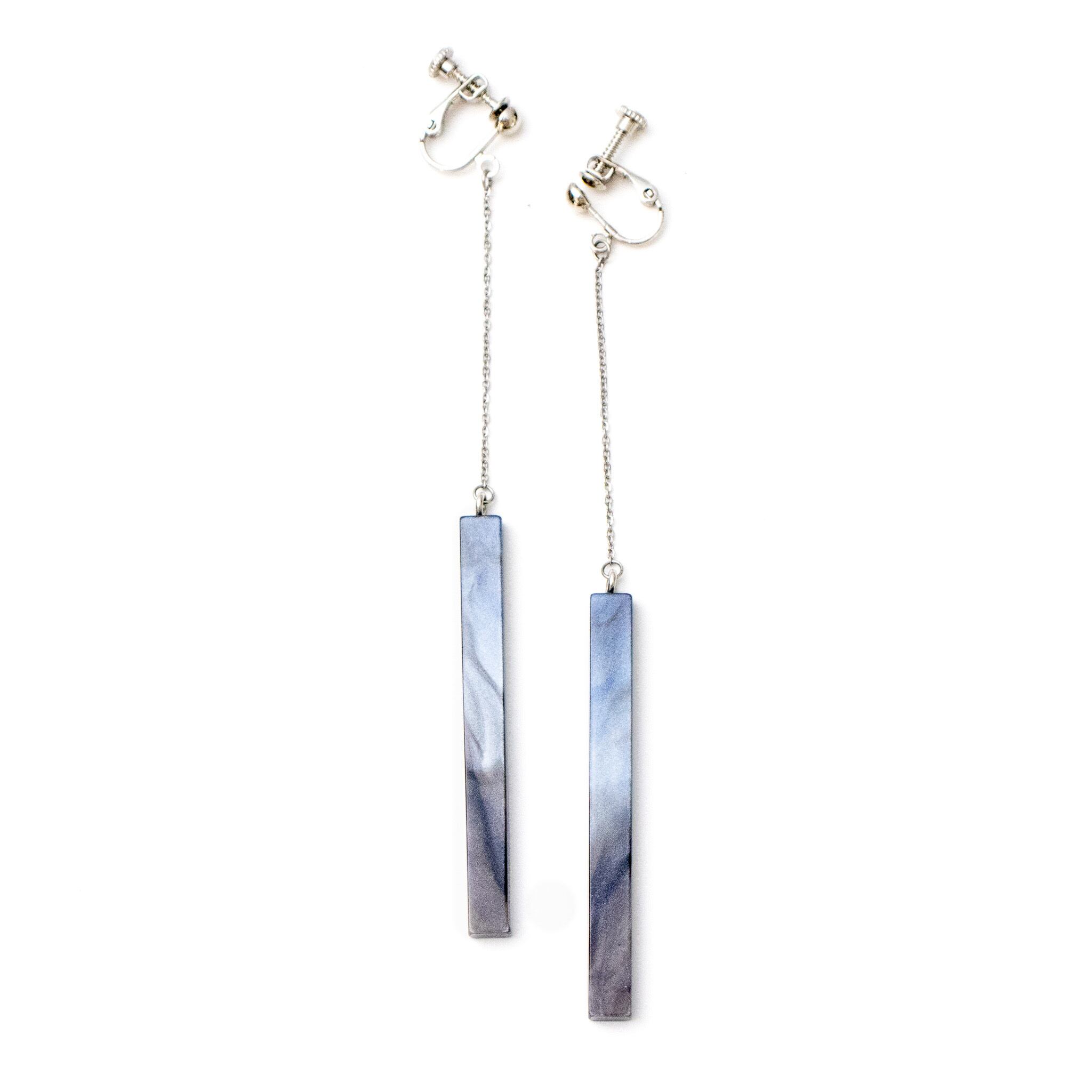長めのチェーンと立体感のあるバーアクリルを組み合わせた、