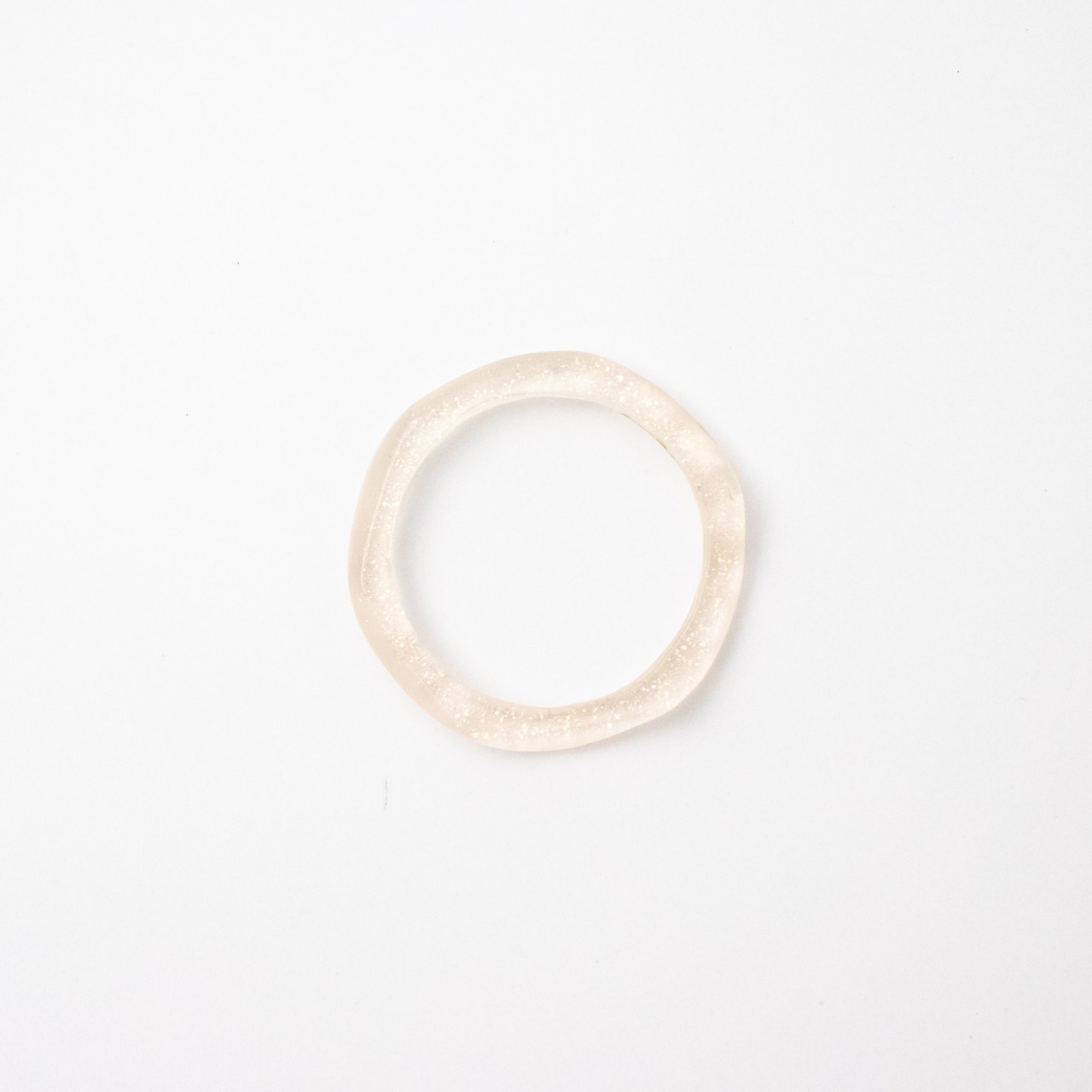 キラキラとオーロラに輝く優しいベージュカラー。肌馴染みのいいリングです。