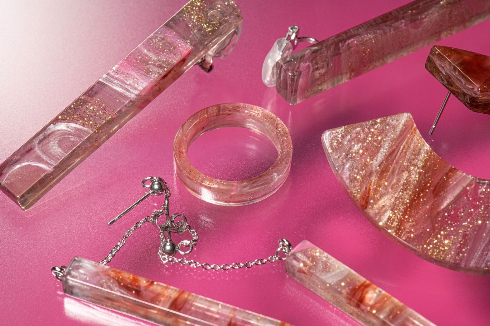 クリアベースに、ピンク、ブラウン、ラメゴールドなどが入り混じったアクリル板。