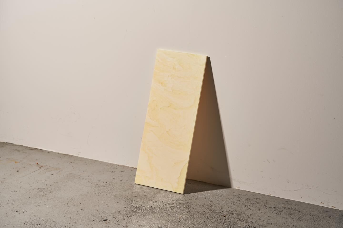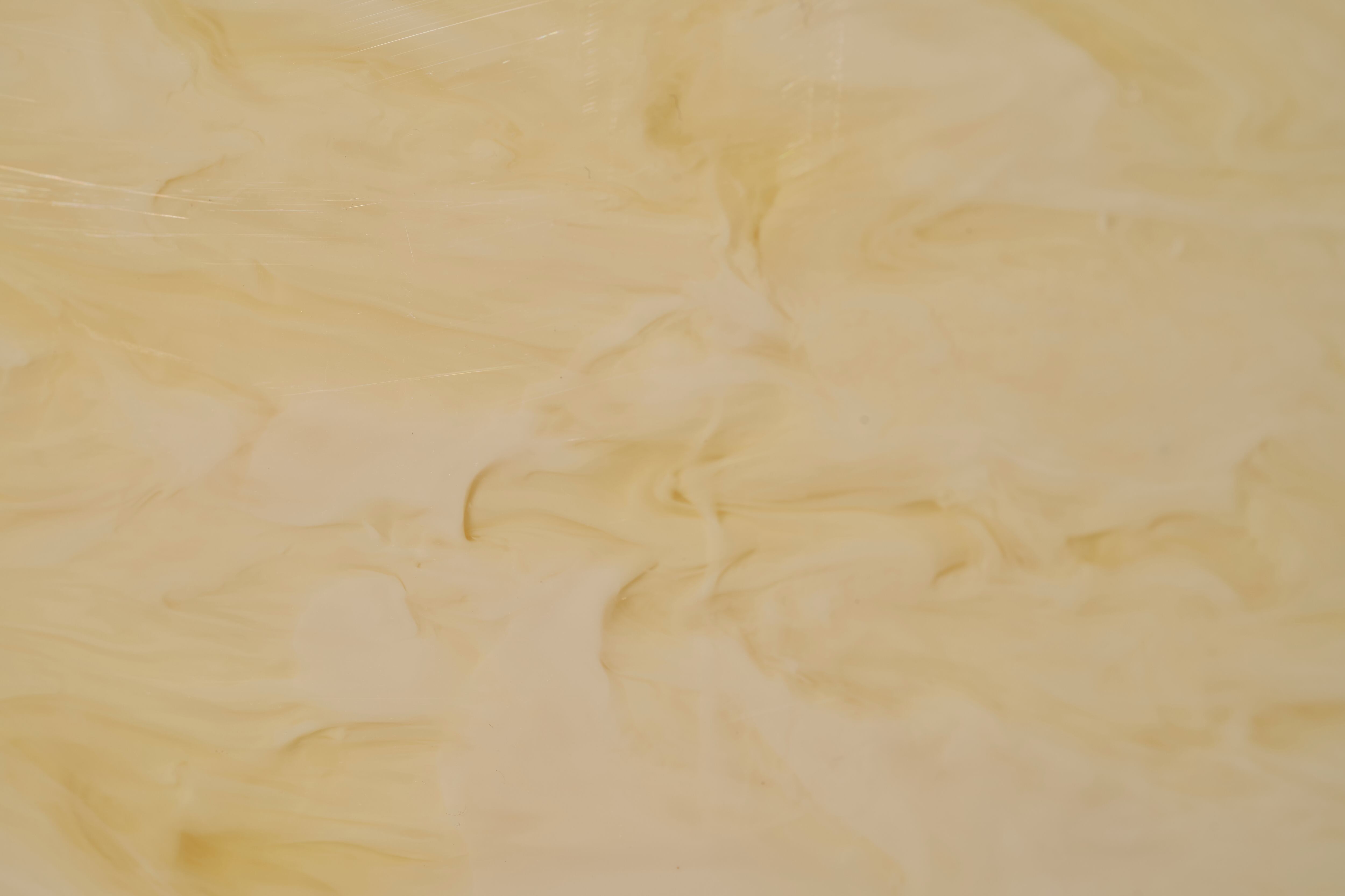 ホワイト寄りのイエローベースにバターが溶けたようなマーブル模様になっています。